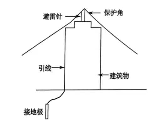 如圖所示為避雷針(接閃竿)防雷示意。避雷針可提供一個(gè)雷電只能擊在避雷針上,但不能破壞以它為中心的傘形保護(hù)區(qū)。同樣的原理,避雷帶(接閃帶)提供的是一個(gè)屋脊形的保護(hù)區(qū)。這個(gè)保護(hù)傘或區(qū)所張開的角度受針或帶的設(shè)置高度、雷電強(qiáng)度及其他參數(shù)的影響,有的采用30°,有的采用45°或60°,盡管關(guān)于保護(hù)角的計(jì)算公式很多,但保護(hù)角如何確定一直是富蘭克林防雷理論的最大困擾。這個(gè)困擾在于理論的不完善性、實(shí)踐中的不完全性。避雷針實(shí)質(zhì)是引雷針,它使雷電觸擊其上而使建筑物得以保護(hù),當(dāng)雷擊避雷針或避雷帶時(shí),由于引下線的阻抗,強(qiáng)大的雷電流可能會(huì)造成避雷系統(tǒng)產(chǎn)生高電位,對(duì)地電壓可達(dá)相當(dāng)高的數(shù)值,以至于造成接閃器及引下線向周圍設(shè)備跳火反擊,從而導(dǎo)致火災(zāi)或人身傷亡事故。另外,強(qiáng)大的雷電流泄入大地,在接地極周圍形成跨步電壓的危險(xiǎn)也是不容忽視的。